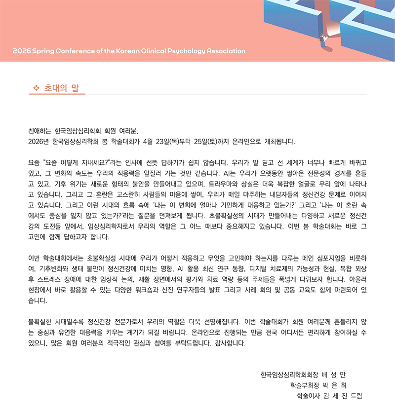 - 필독 2026년 봄 학술대회 참가 안내 (사전등록: 3/27~4/20)